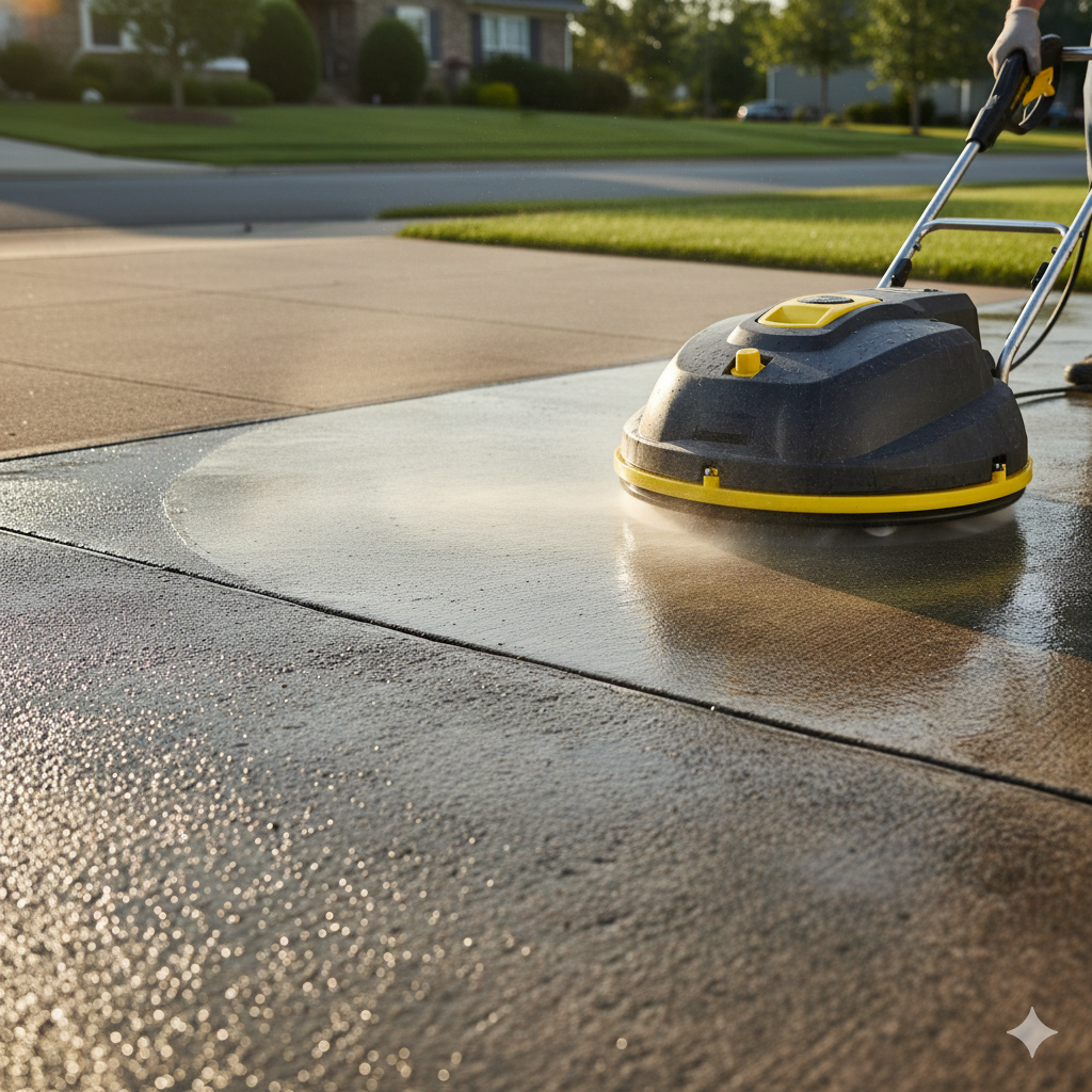 We employ two professional methods to clean your property safely and effectively. Soft Washing is our specialized, low-pressure method, delivering force comparable to a garden hose (under 100 PSI). It uses safe, biodegradable cleaning solutions that sanitize surfaces, killing mold, algae, and dirt at the root for a longer-lasting clean. This technique is ideal for all delicate materials, including roofs (shingles/tile), vinyl siding, stucco, painted surfaces, and sensitive areas like bare wood (fences and decks). For hard, resilient surfaces, we use Monitored Pressure Washing, which involves higher, controlled force. We precisely monitor and adjust the PSI to prevent damage while effectively removing deeply embedded grime, oil, and tough stains from surfaces such as concrete driveways, sidewalks, durable pavers, and hard masonry.